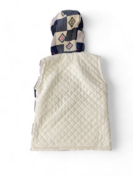 Blue and White Puffer Hoodie Vest